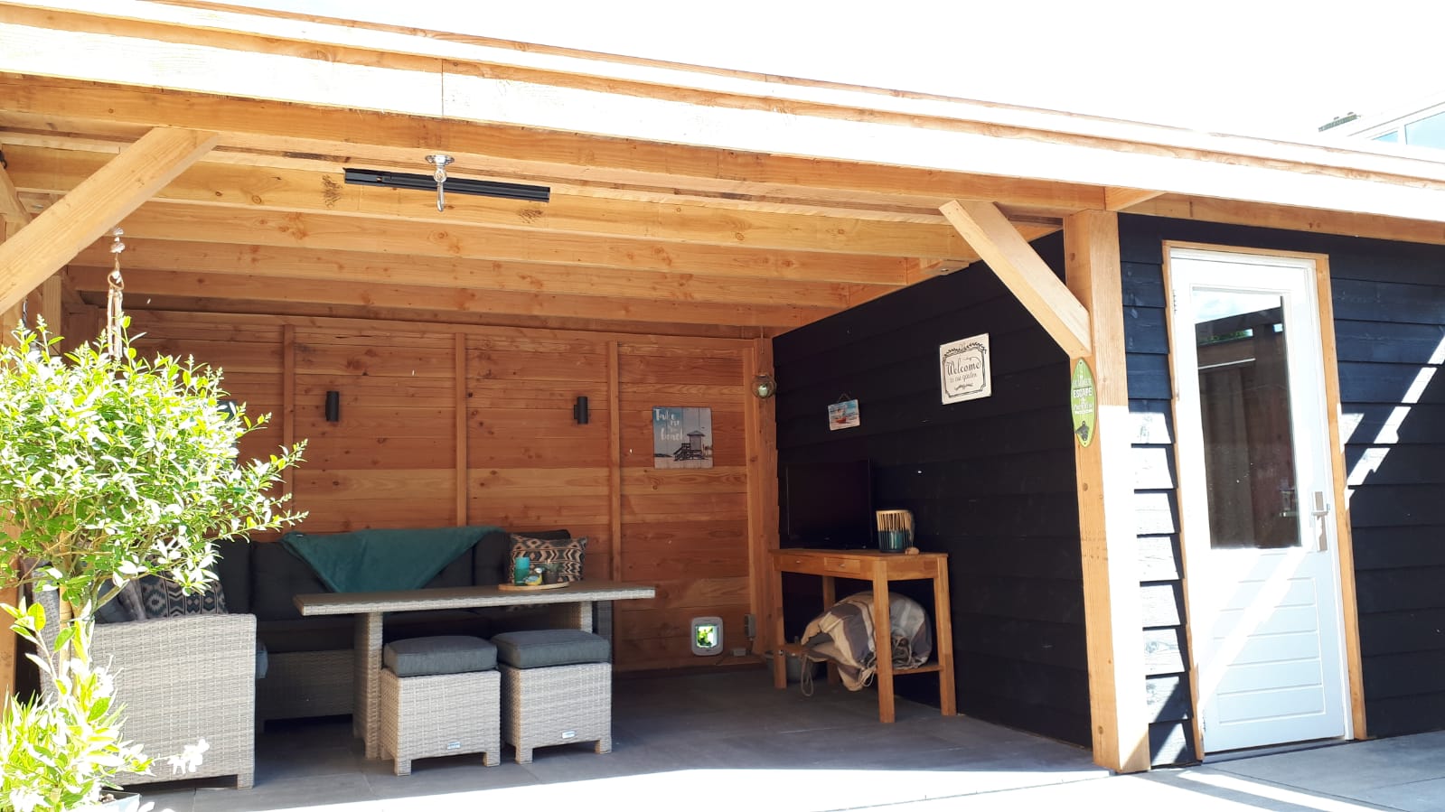 Afgelopen week een overkapping geplaatst aan bestaande schuur,de overkapping is gemaakt van douglas hout en het dak is van EPDM.