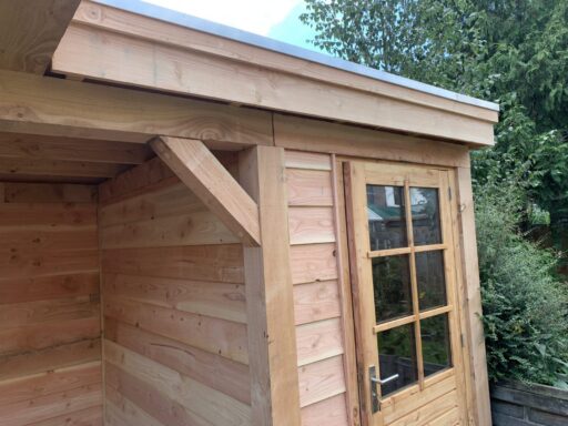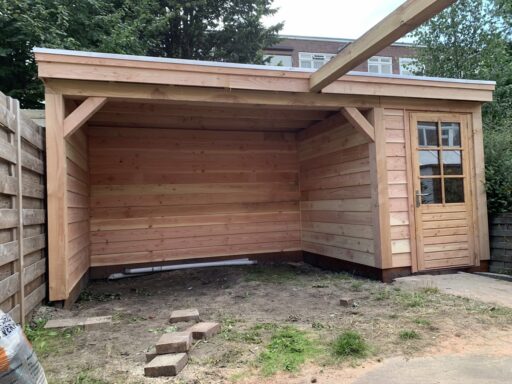 Afgelopen week in Den Haag een overkapping met schuur gedeelte geplaatst in Den Haag ,deze is gebouwd op een hardhouten fundering . De rest is gemaakt van douglash hout. en op het dak ligt epdm .