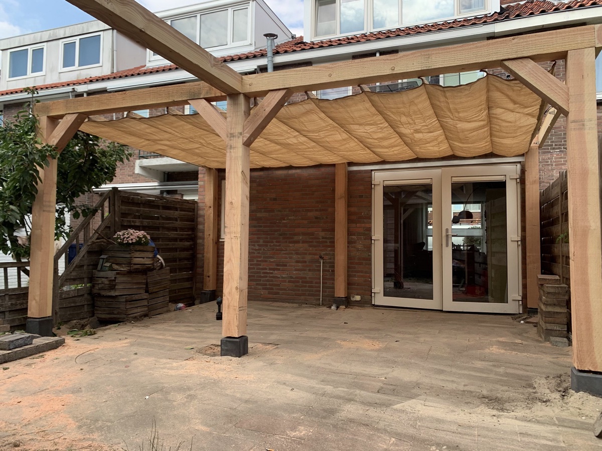 Pergola met schaduw doek geplaats Den Haag