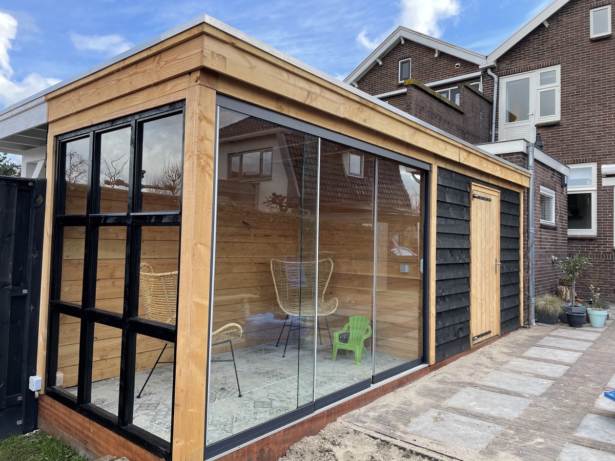 Overkapping met berging en glazen schuifpui