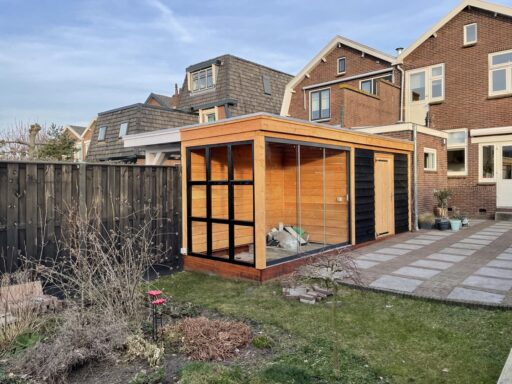 Overkapping met berging en glazen schuifpui