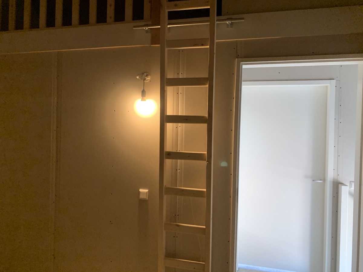 Over de helft van de ruimte van de zolder hebben we een vide geplaatst voor extra opberg ruimte , deze is toegankelijk gemaakt doormiddel van een houten ladder.
