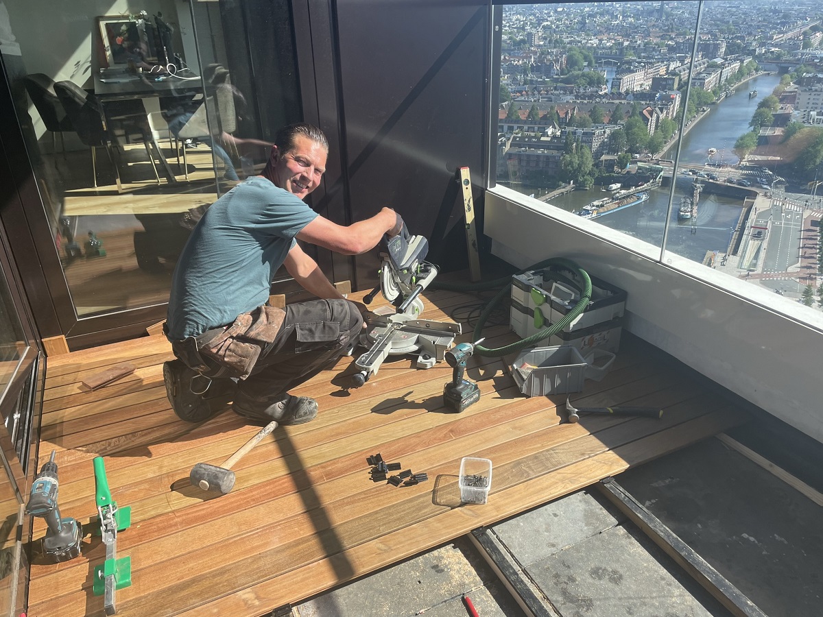 afgelopen week een geplaatst in een appartementen complex de Pontsteiger in Amsterdam , de planken van de vlonder zijn van Ipé hardhout 21 x90 mm. deze planken hebben aan beide zijden een sleuf gefreesd t.b.v. montage clips zodat je geen schroeven ziet .