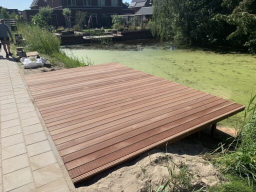 Afgelopen week voor bewoners op de Vuur vlinder in Gouda een bankiray vlonder geplaatst.de vlonder delen zijn gemonteerd op een hardhouten frame.