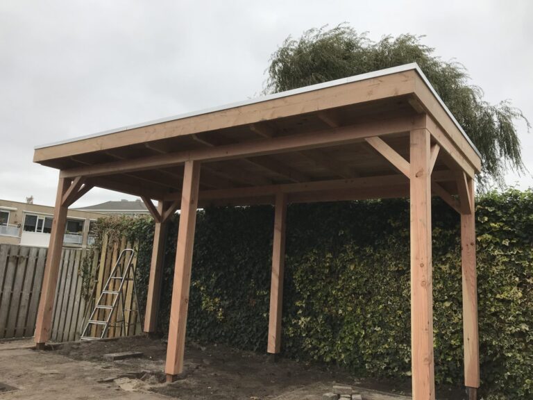 Overkapping Afgelopen week een douglas houten overkapping geplaatst in Rotterdam. Deze is gemaakt van douglas houten palen balken en planken. De staanders van de overkapping rusten op hardhouten palen van 1,5 die de grond ingaan om vervolgens een draadeind er…