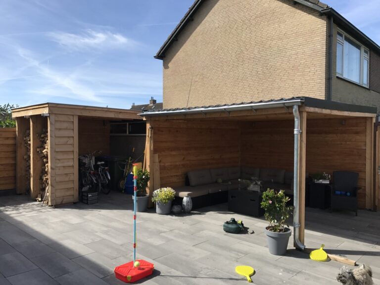Schuur, pergola’s , overkapping en schutting geplaatst woerden