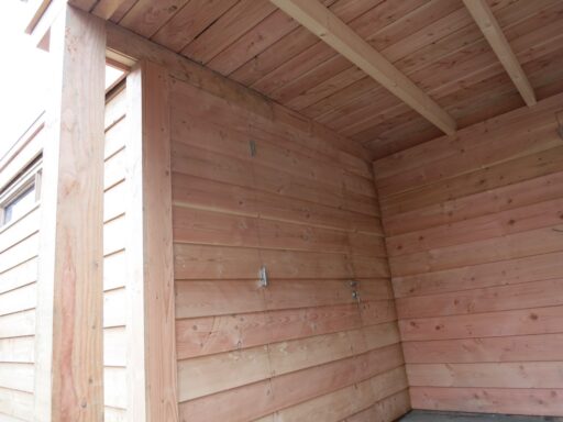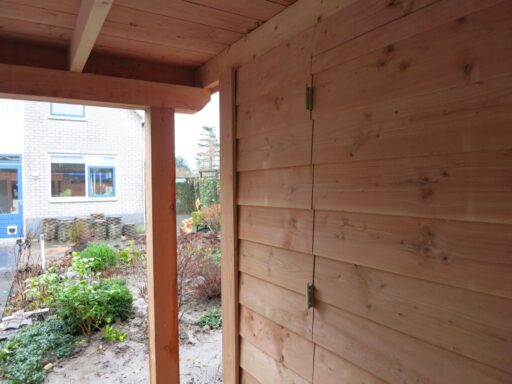 Dit houten Douglas buitenverblijf is gemaakt in combinatie met een berging. De berging is voorzien van een hardhouten raamkozijn, het dak is beplakt met EPDM.