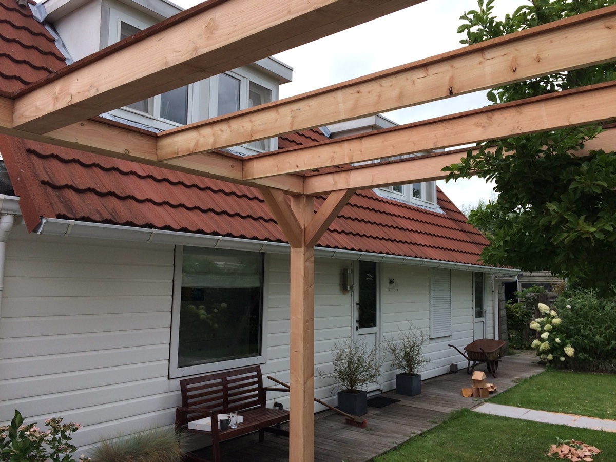 Afgelopen week een douglas houten pergola geplaatst in Leimuiden ten behoeve voor een schaduw doek.