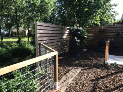 Afgelopen week hebben wij in Cappelle a/d IJssel een Douglas houten schutting geplaatst met een hekwerk van verzinkt gaas en een Douglas houten hekwerk op het einde van het terras. De bewoners wilden meer privacy en een hekwerk voor de veiligheid van de kinderen.
