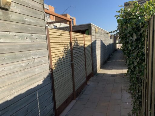Ook hebben wij de schutting voorzien van 2 Elan poortdeuren deze hebben als basis een gegalvaniseerd frame met daarop dezelfde geïmpregneerde latjes en zijn ze voorzien van een R.V.S cilinder slot.