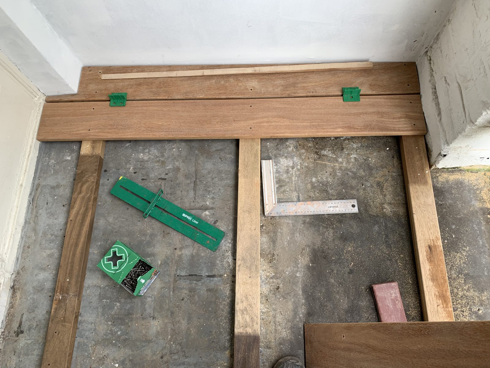 Afgelopen week een hard houten vlonder op balkon geplaatst Amsterdam .De glad geschaafde camaru vlonder delen van 21 x 145 mm is geschroefd met spax R.V.S vlonder schroeven op hardhouten regelwerk.