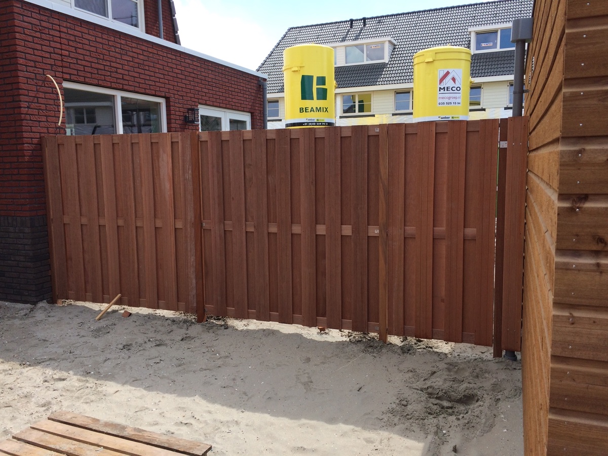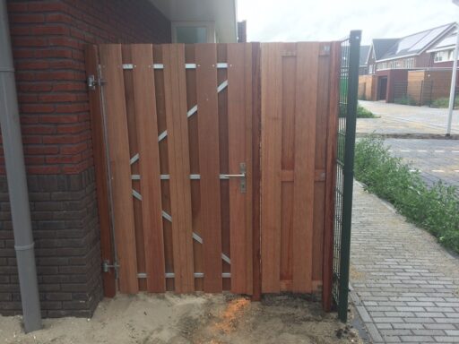 inclusief een poortdeur op een gegalvaniseerd stalen frame met daarop hardhouten schutting planken.