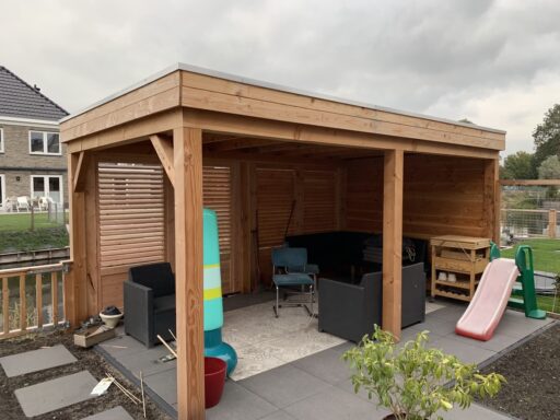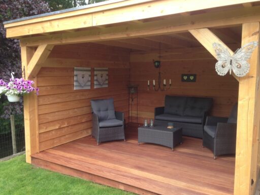 Een buitenverblijf of luxe tuinhuis dient naast zithoek ook als overkapping voor uw kluswerkzaamheden of hobby.