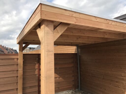Onze klanten kiezen voor een overkapping op maat in de meeste gevallen voor hout. Wij werken met houten palen van het merk Douglas of van geïmpregneerd vurenhout.