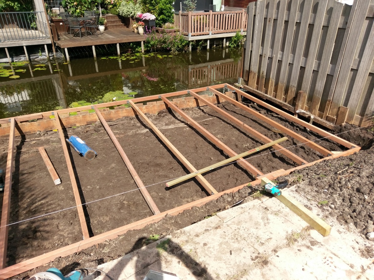 uitlijnen van regelwerk hardhouten vlonder Voorhout
