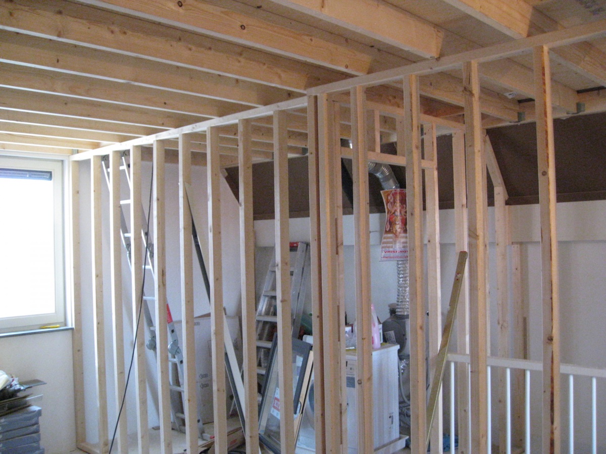 De meeste wanden die wij plaatsen bestaan uit een vurenhouten regelwerk waarop de gipsplaten worden geschroefd.