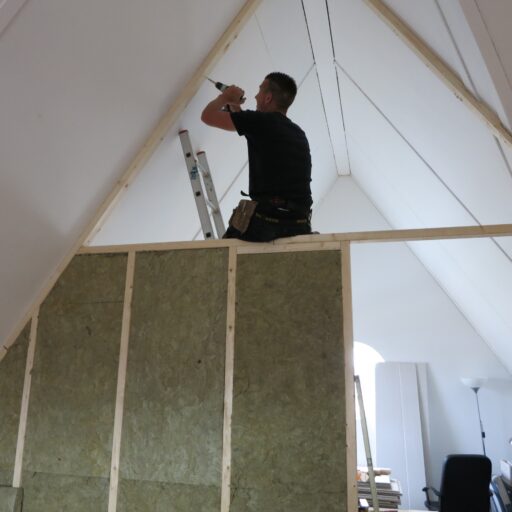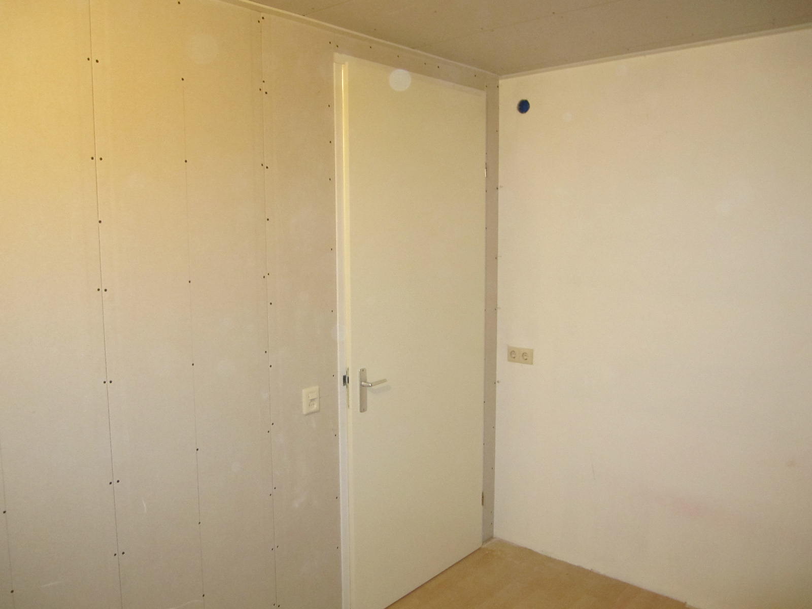 Wand laten plaatsen voor het creëren van bijvoorbeeld extra kamers ,deze wanden kunnen wij voorzien van elk gewenste binnen deur en alle benodigde elektra.