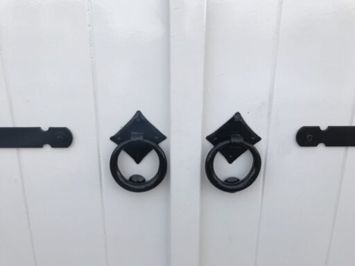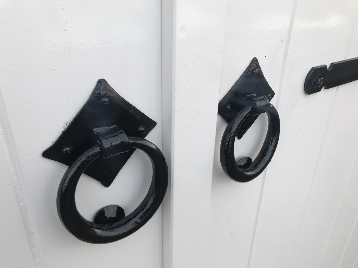 Om de dubbelen deuren een klassieke look te geven heb ik groeven in de buitenkant gevreesd , en de deuren voorzien smeed ijzeren hang en sluit werk.