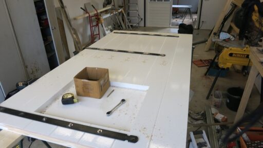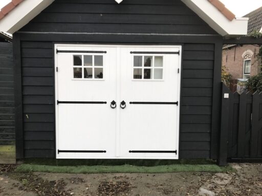 De deuren hebben elk een afmeting 1200 mm breed en 2400 mm hoog.Om gewicht te besparen zijn de deuren samengeteld uit een plaat watervaste multiplex 10 mm voor de binnenkant van de deuren en voor de buitenkant 12 mm.