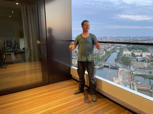 De overkapping met berging is gebouwdop een hardhouten fundering onder het overkapping gedeelte hebben we een vloer gelegd van brede bankiray vlonder delen en tegels in het berging gedeelte.