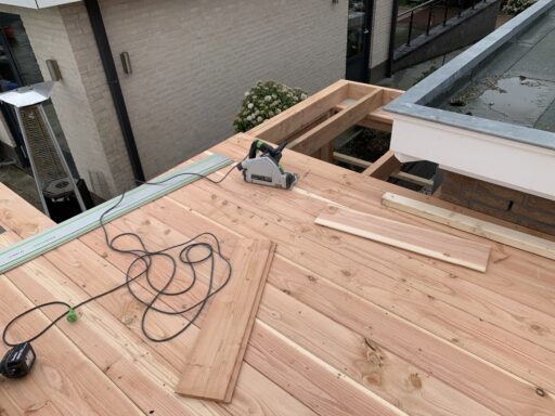 We hebben de details van de dakranden het zelfde gemaakt als de woning en is gemaakt van watervast multiplex , en op het dak ligt EPDM.