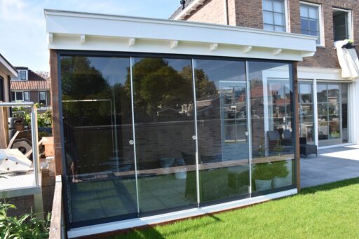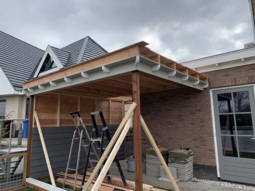 Nadat we eerder een hard houten vlonder op de dezelfde locatie hadden gerealiseerd .hebben wij afgelopen week een overkapping geplaatst in een L vorm en deze voorzien van glazen deuren in Alphen aan de Rijn.