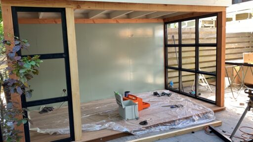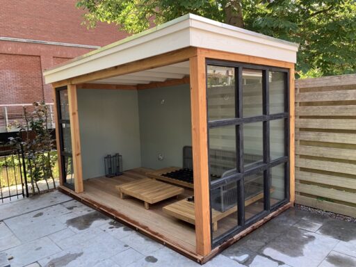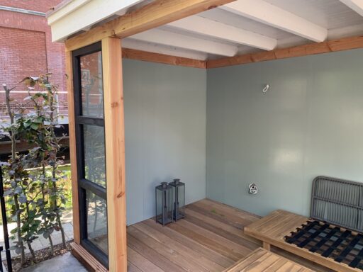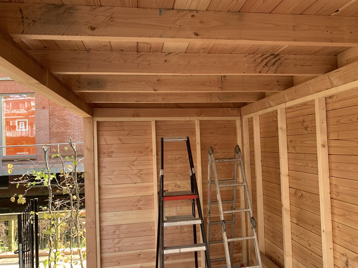 Afgelopen week een overkapping en een buitenverblijf gemaakt in Alphen aan de Rijn het buiten verblijf is gemaakt van hoofdzakelijk douglas hout en de binnenwanden zijn bekleed met watervast multiplex.