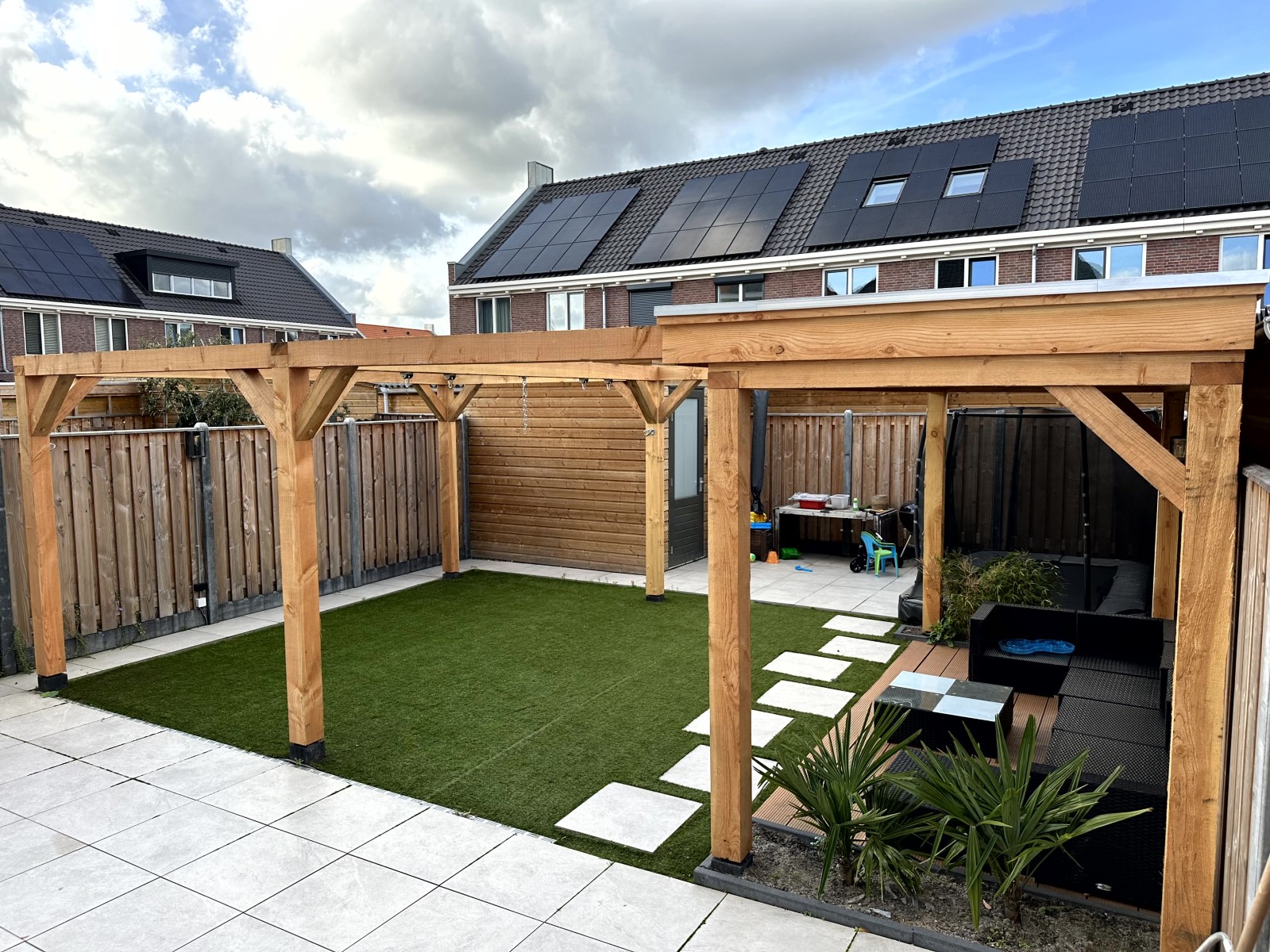 Afgelopen week een overkapping met pergola geplaatst in Gouda.