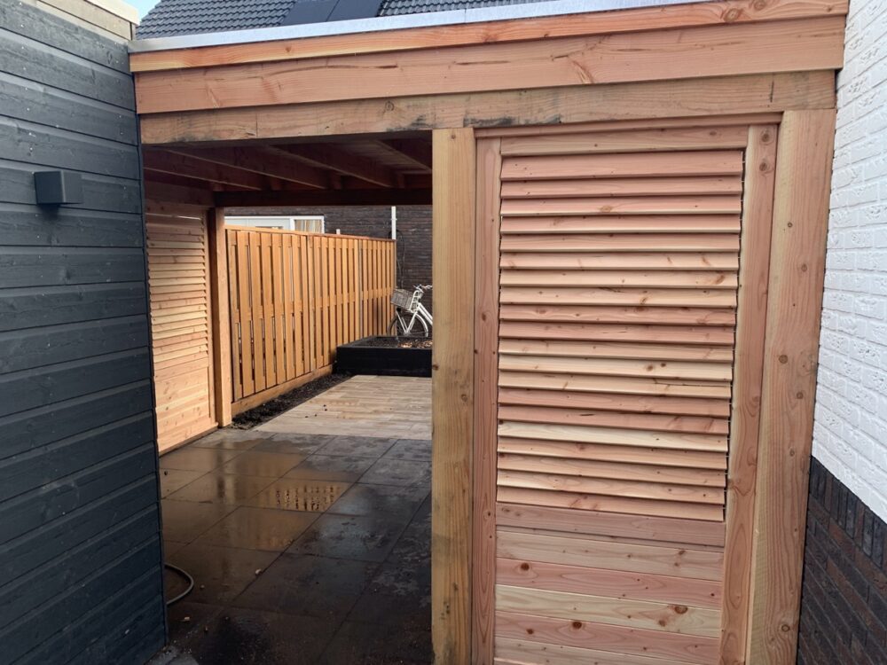Douglas houten overkapping Afgelopen week op de Ridderspoor in Bodegraven een overkapping geplaatst met shutters van douglas hout . Ook een overkapping laten plaatsen? Ruim 20 jaar Ervaring Deskundig Advies Spoedige Realisatie Op maat Gemaakte Offerte Altijd Scherpe Prijzen Vakkundig Gemaakt en Geplaatst Vrijblijvende Offerte Aanvragen Dit bericht delen Vorige Bericht Tuin timmerwerkzaamheden Gruto Bodegraven Volgende Bericht Schutting met betonnen palen en hardhouten schermen