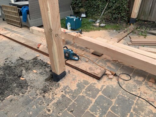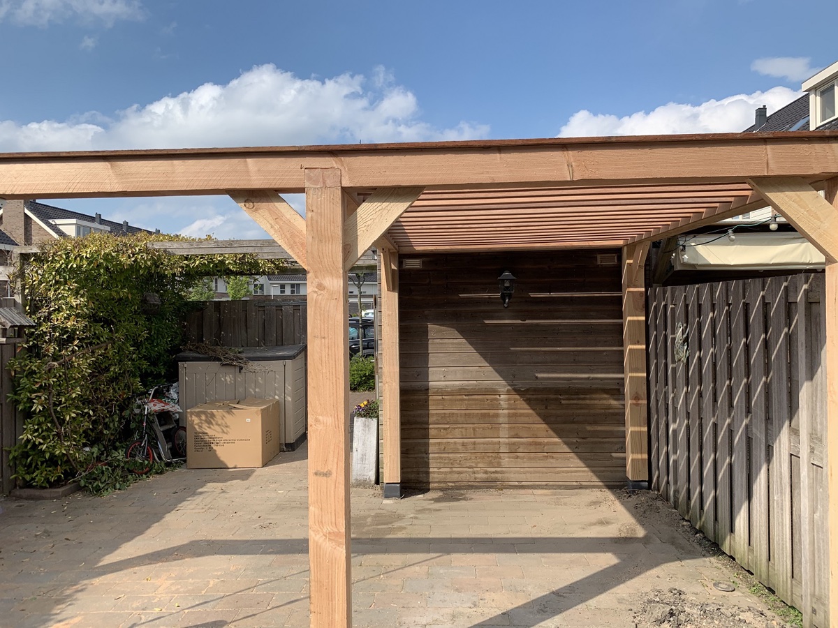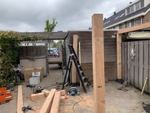 Afgelopen week een Pergola van douglas hout geplaatst In Berkel en Rodenrijs de staanders van de pergola staan op betonnen poeren.