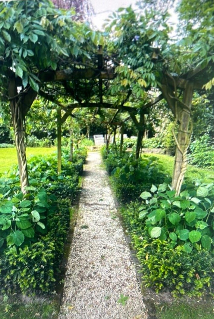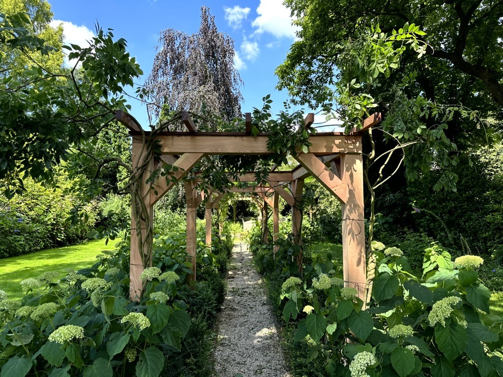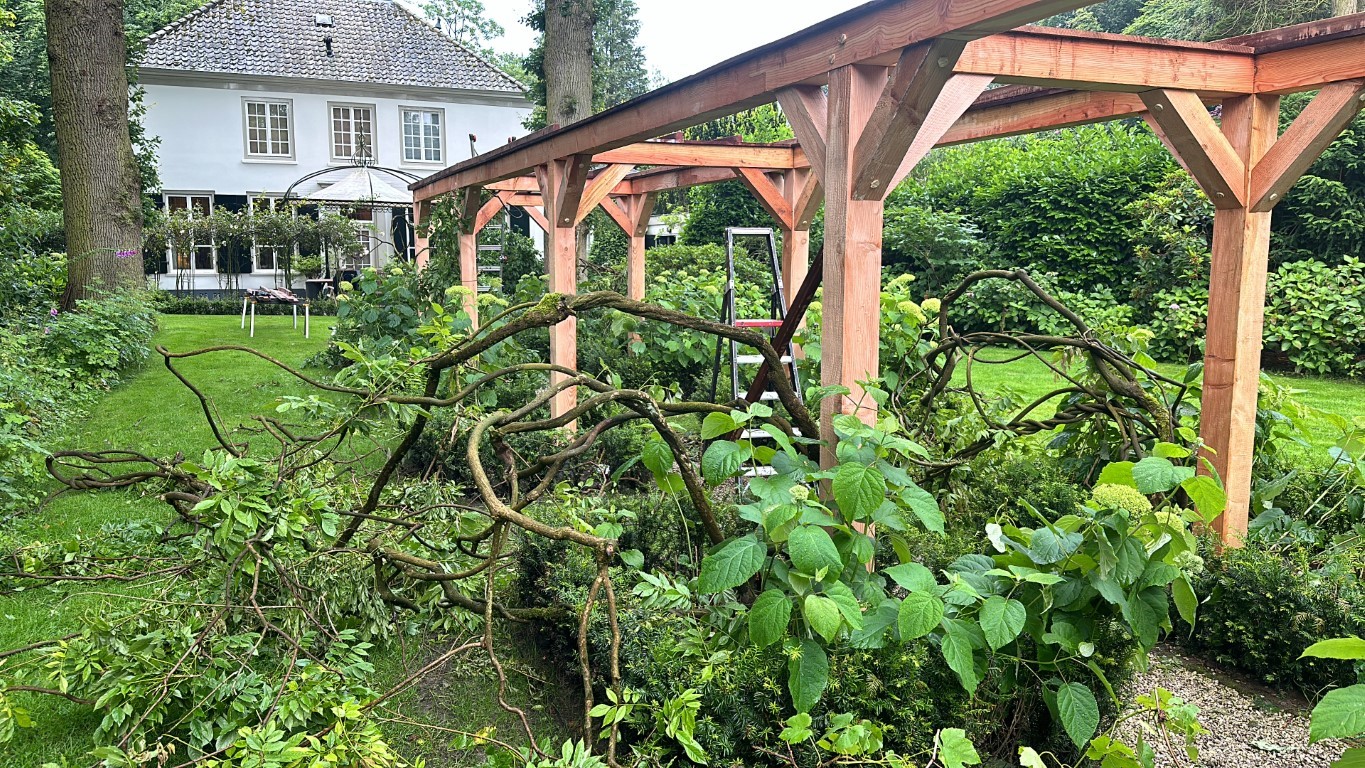 De klant had wel een verzoek om de bestaande klimop /beplanting te behouden. Daardoor moesten wij de oude pergola voorzichtig demonteren en de beplanting zoveel mogelijk takt te houden.