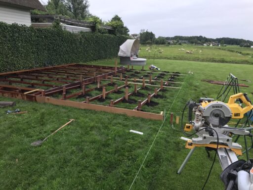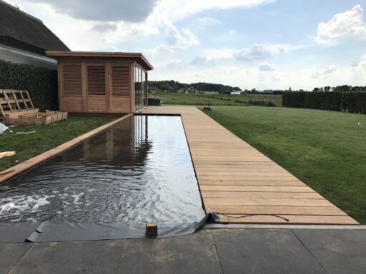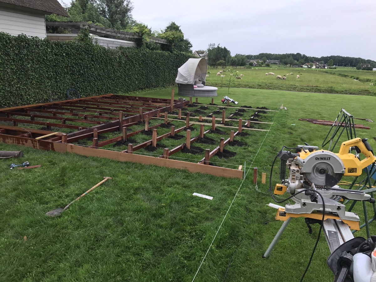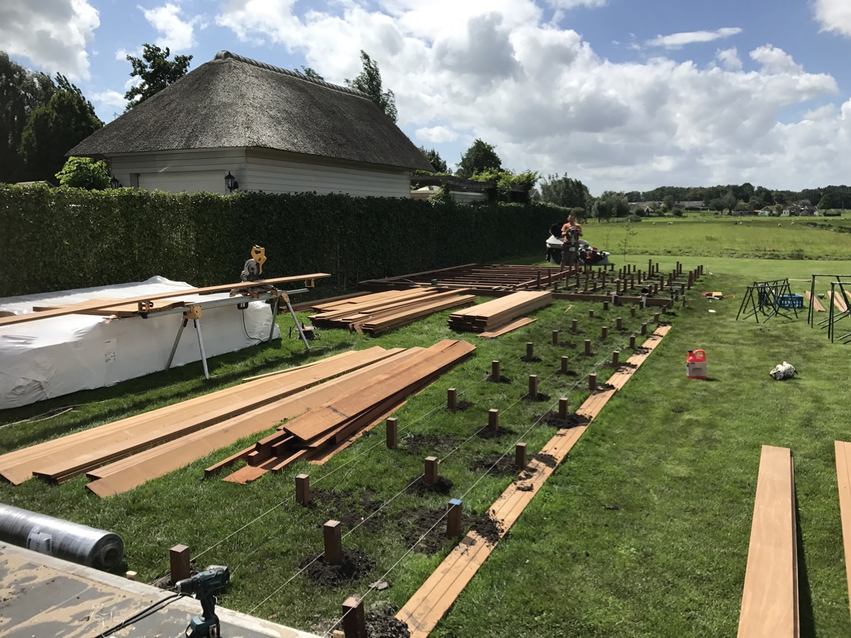 Plaatsen van vlonder met brede Bankirai vlonderdelen