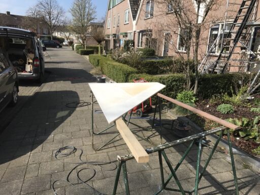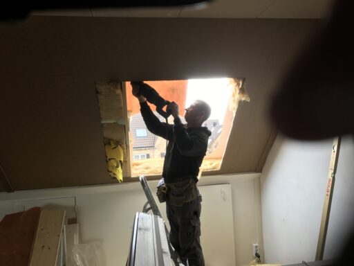 MP timmer en onderhoud bedrijf heeft een velux dakraam geplaatst van het type GGL U06 118 x 134 cm en deze afgetimmerd met gegrond multiplex 12 mm en mdf koplatten