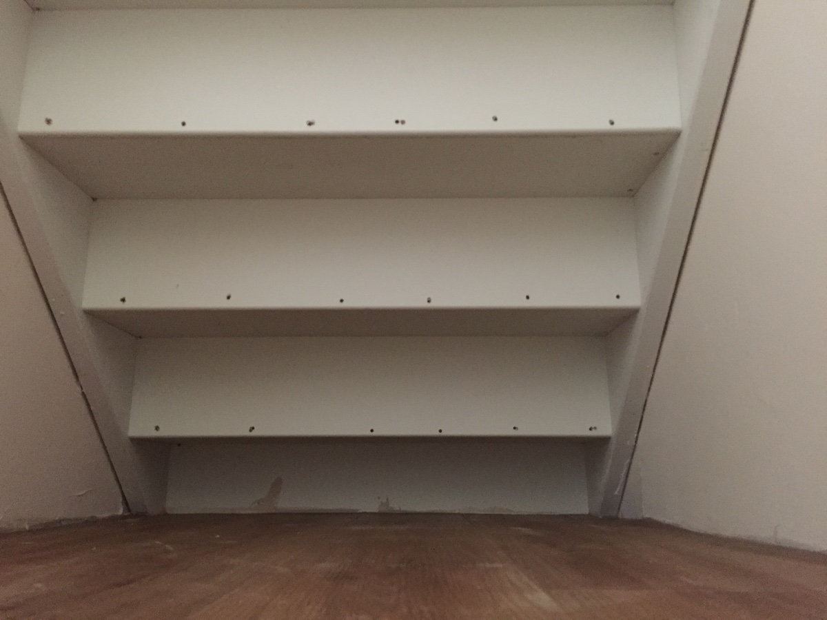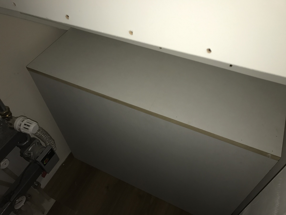 wat normaal het stootboard van de trap is nu het front van de lade is .De kast en de lades zijn gemaakt van MDF platen met lak folie.