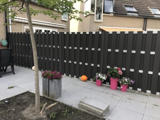 Voor een bewoner en zijn naaste buren uit de Abdis Gijsberta straat in Den Haag een schutting geplaatst met losse houten schutting planken geplaatst .