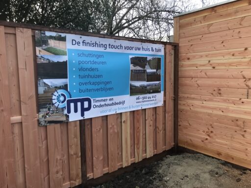 Voor de schutting is er gekozen voor douglash houten schutting delen 180 x180 cm hardhouten palen en de bovenkant van de schutting is voorzien van hardhouten regel. Ook is de schutting voorzien van een hardhouten borderplank deze zorgt er voor dat de schutting delen niet in contact komen met de grond en zodoende de duurzaamheid van de schutting vergroot.