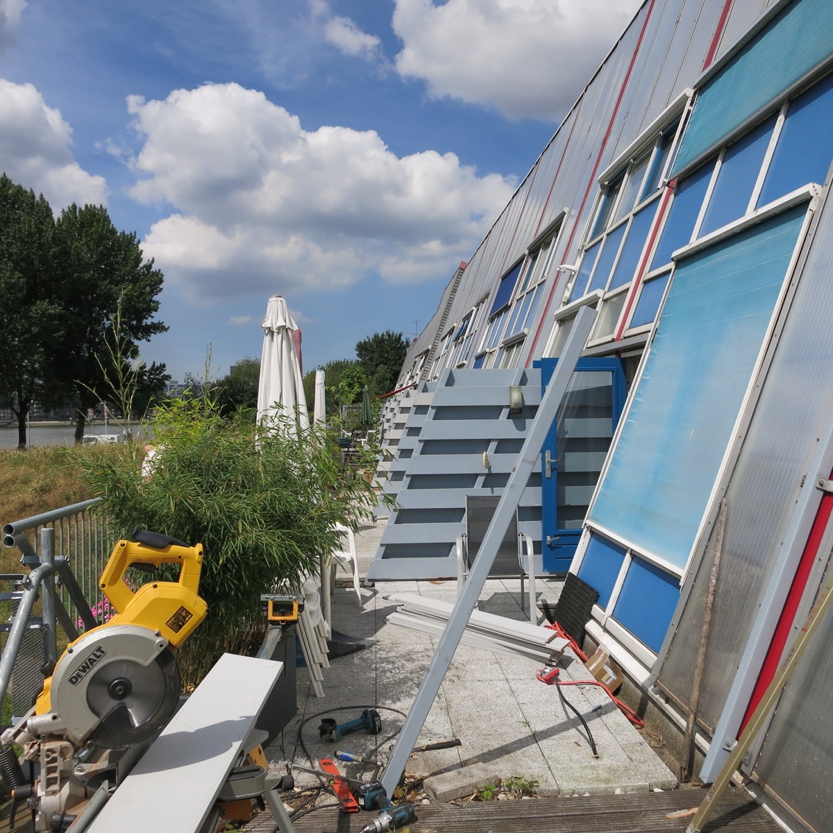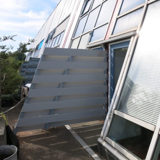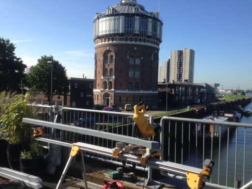 Voor Waterwerk Rotterdam plaatste Michel Potuyt deze 16 schuttingen met losse Red Cedar planken, bevestigd op hardhouten palen en geschroefd met RVS.