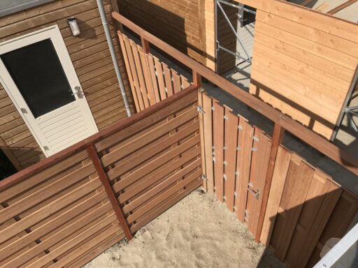 Afgelopen week voor de bewoners in Park Triangel te Waddinxveen hardhouten schuttingen en poort deuren geplaatst.