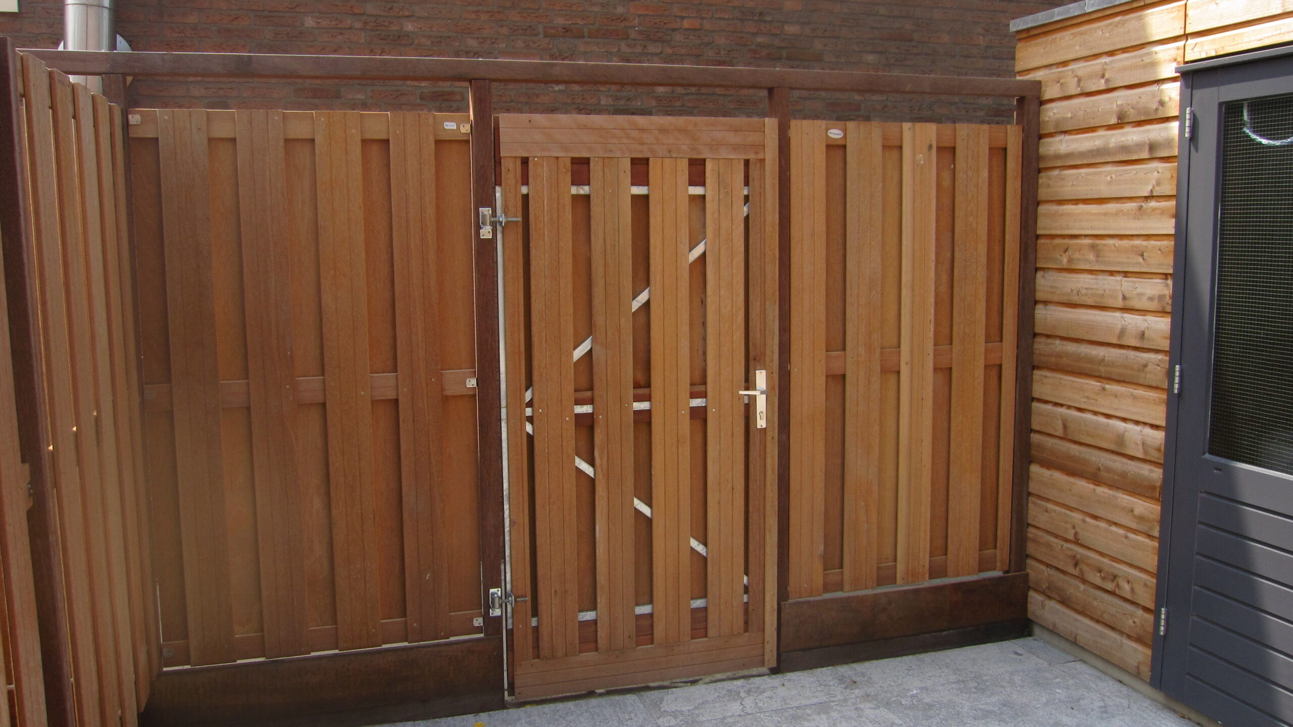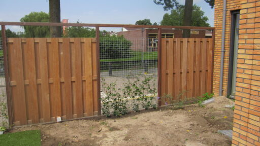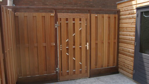 MP Timmer- en Onderhoudsbedrijf heeft hardhouten schuttingen met bijpassende poortdeuren geplaatst bij de bewoners van de Vromade in Bodegraven.