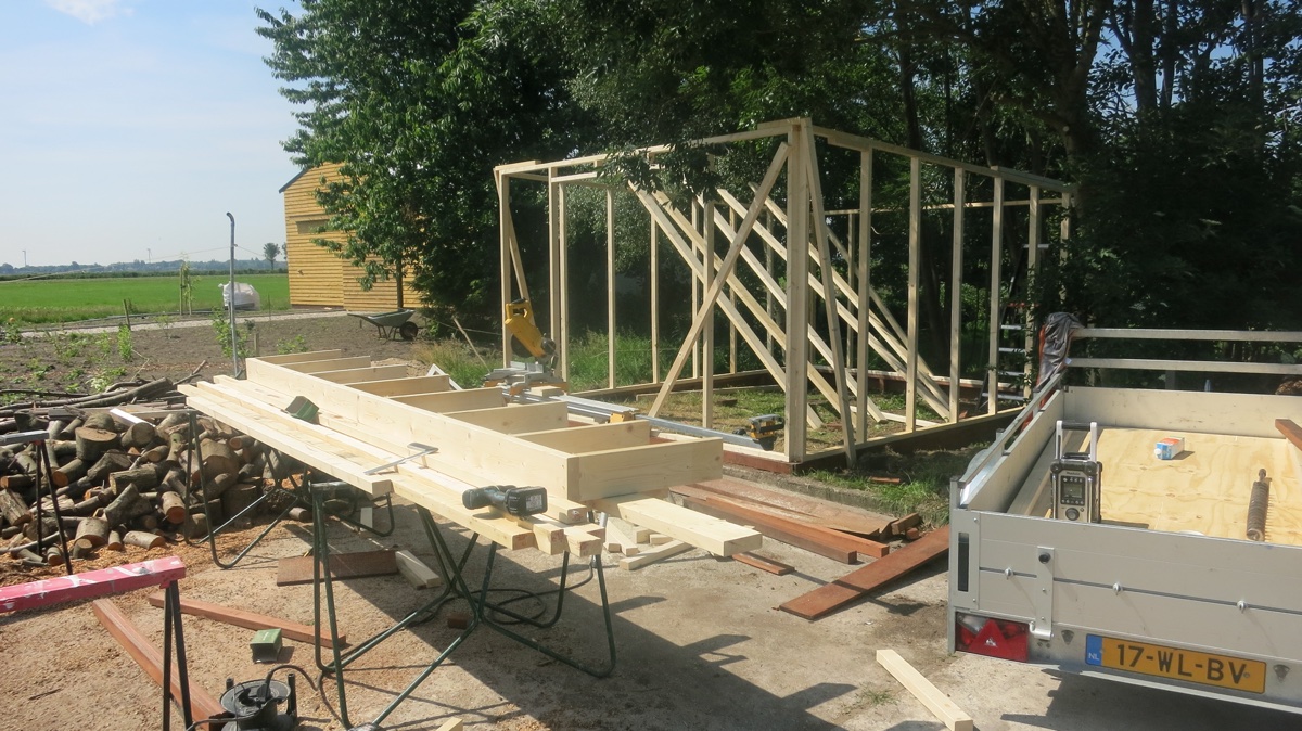 Deze schuur werd door MP Timmerbedrijf op maat gemaakt voor klanten in Woubrugge. Het frame is gemaakt van hardhout, de schuur en de dubbele schuurdeur zijn gemaakt van Douglas hout. Is het geen plaatje?!
