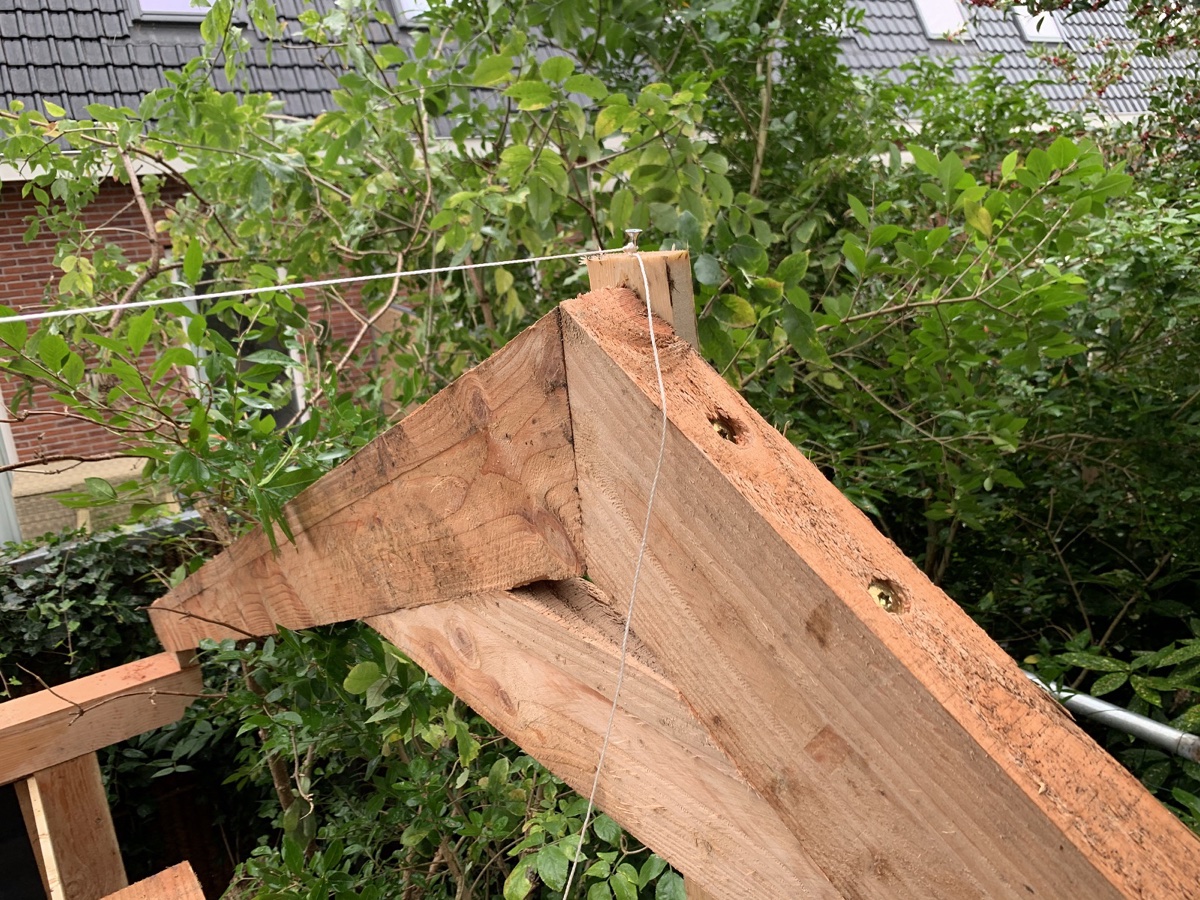 Plaatsen van een traditionele kapschuur van douglas hout in Bodegraven