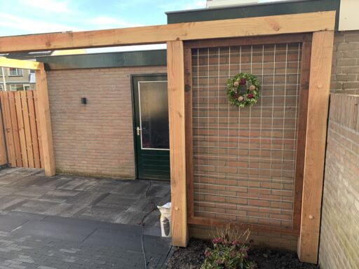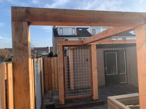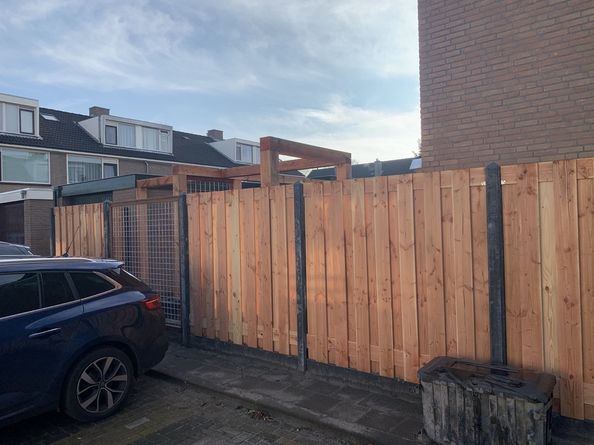 Afgelopen week een schutting , poortdeur , vlonder en pergola geplaatst op de Grutto in Bodegraven.