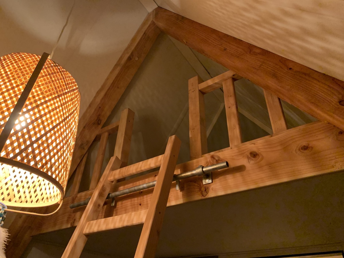 Door gebruikt te maken van douglas hout met name de balken krijgt deze vide een robuuste uitstraling .